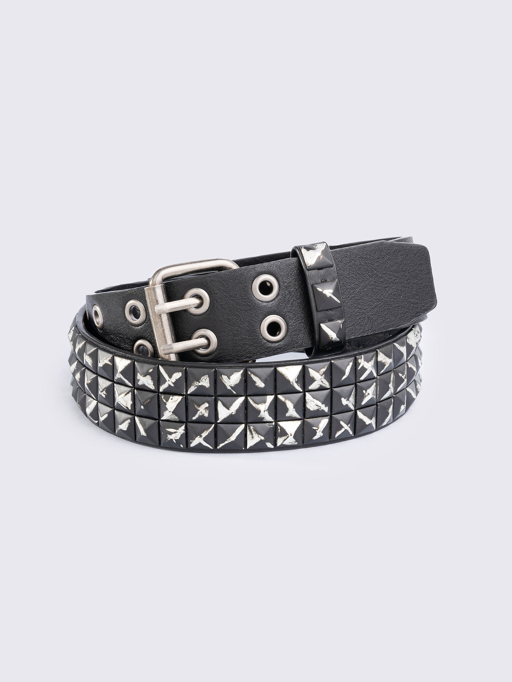 Black vegan leather punk belt with pyramid studs.