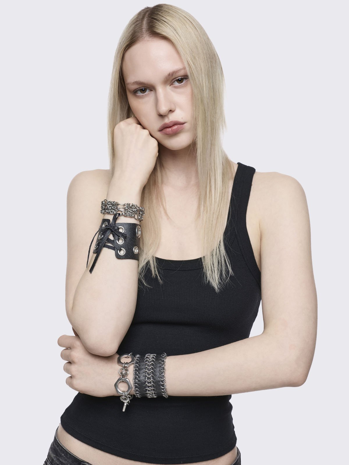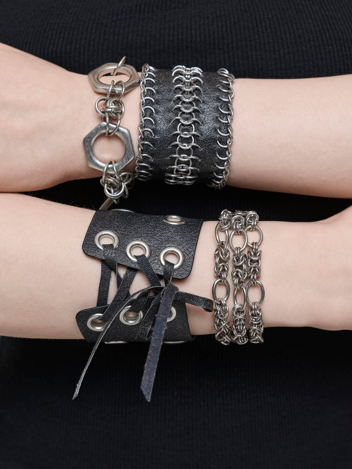 • Lace-up corset, eyelets and chains