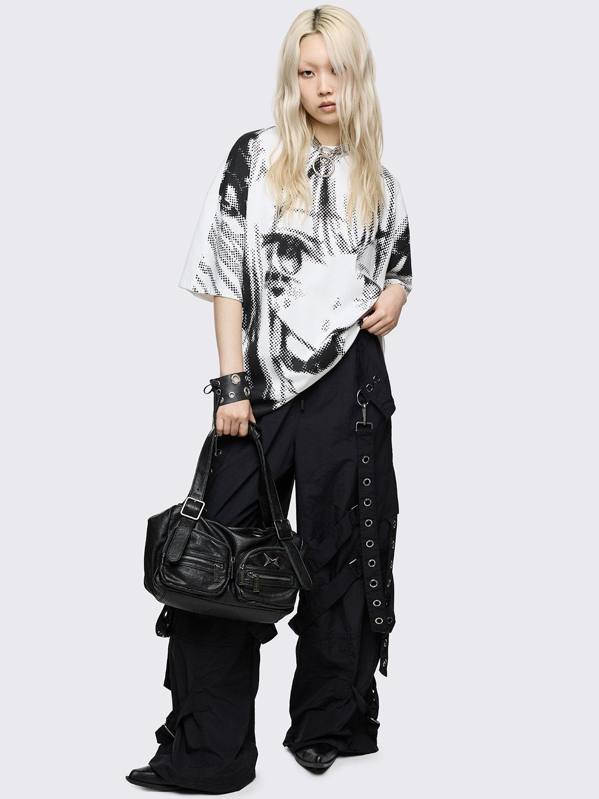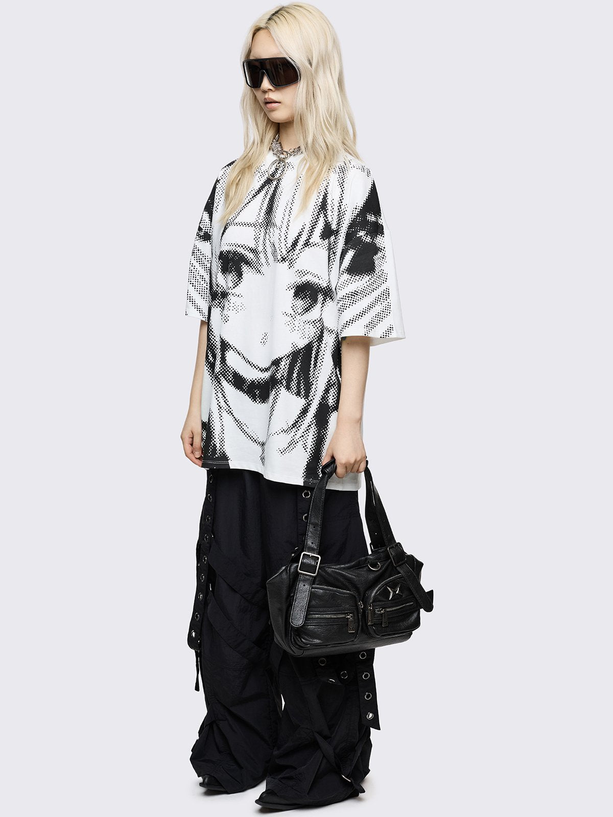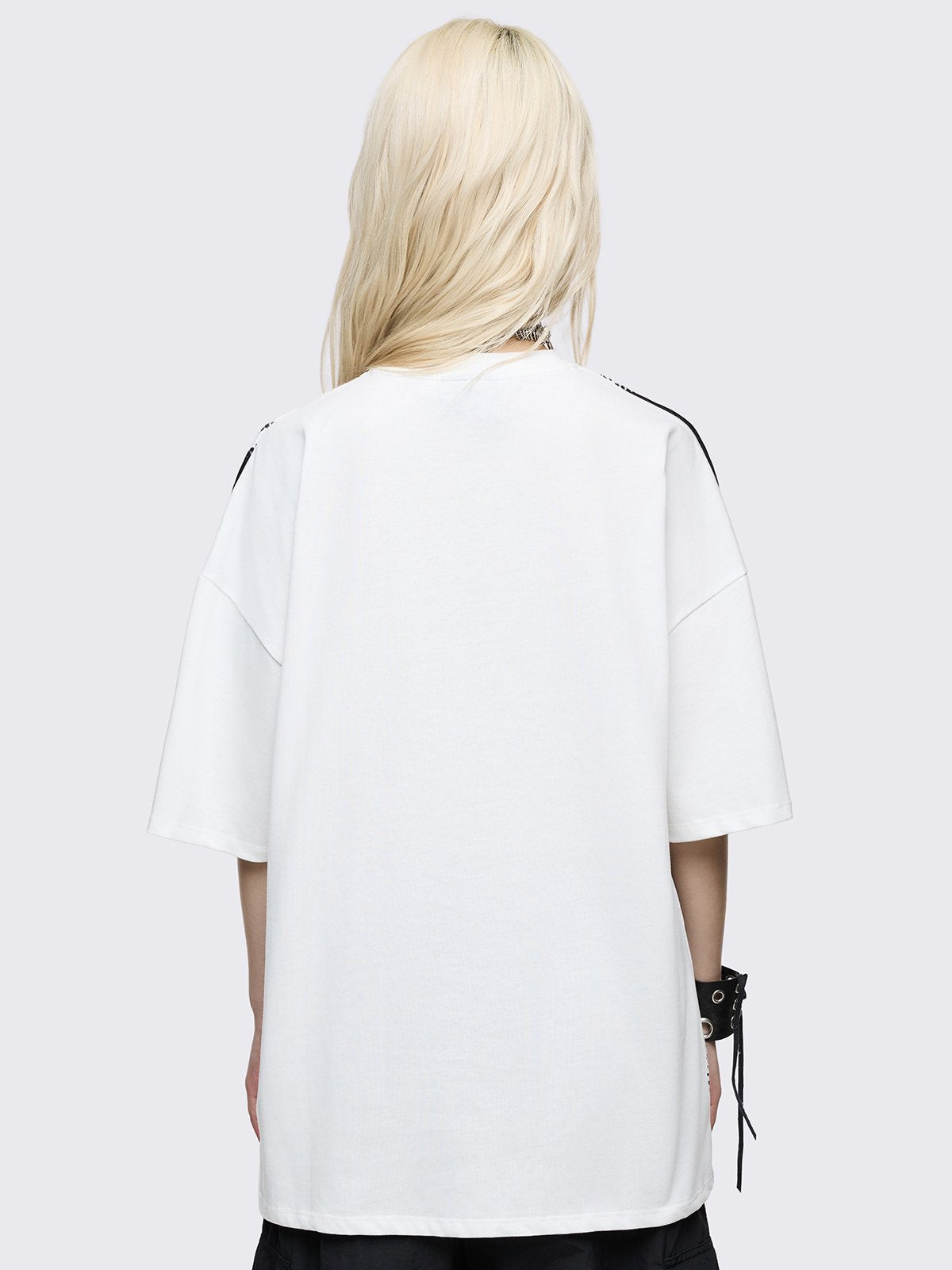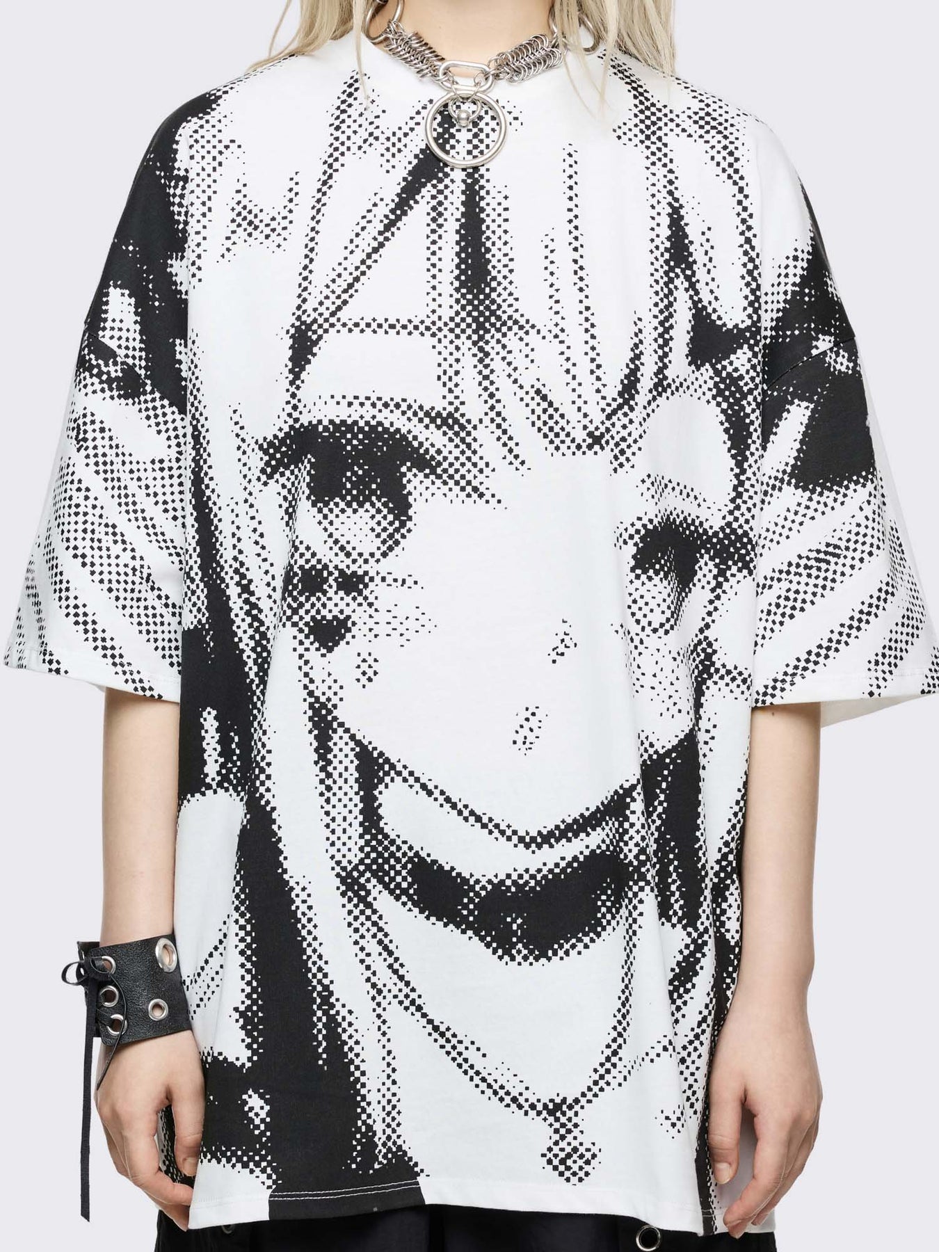 White oversized graphic t-shirt with pixel anime girl graphic print