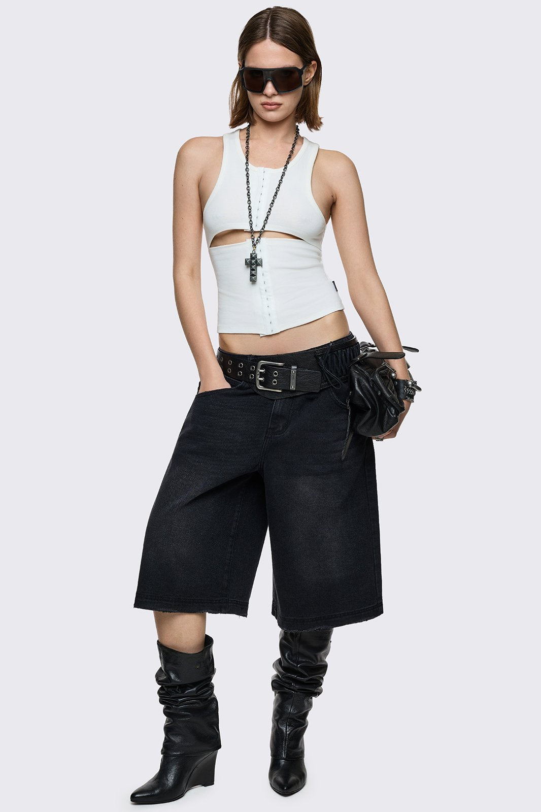 Measured from the top of the waistband straight down to the hem.