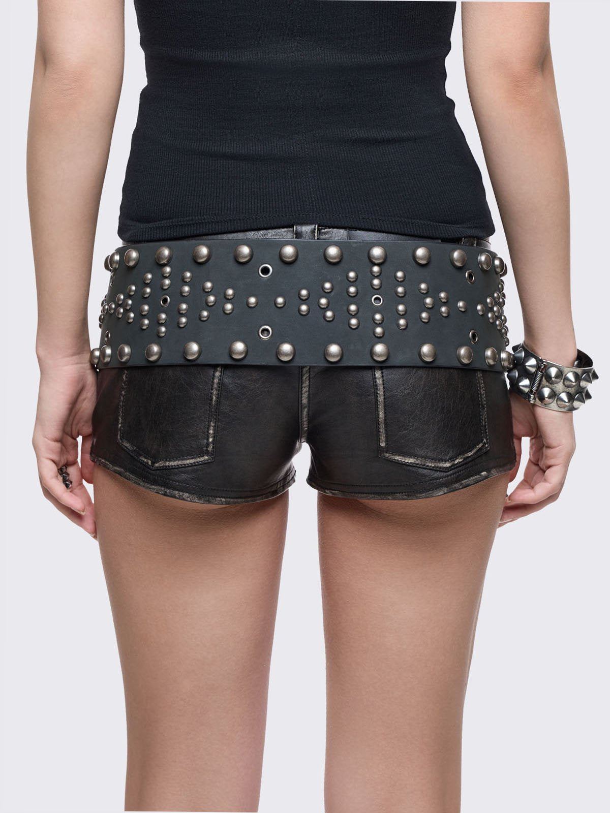 • Black faux leather wide belt