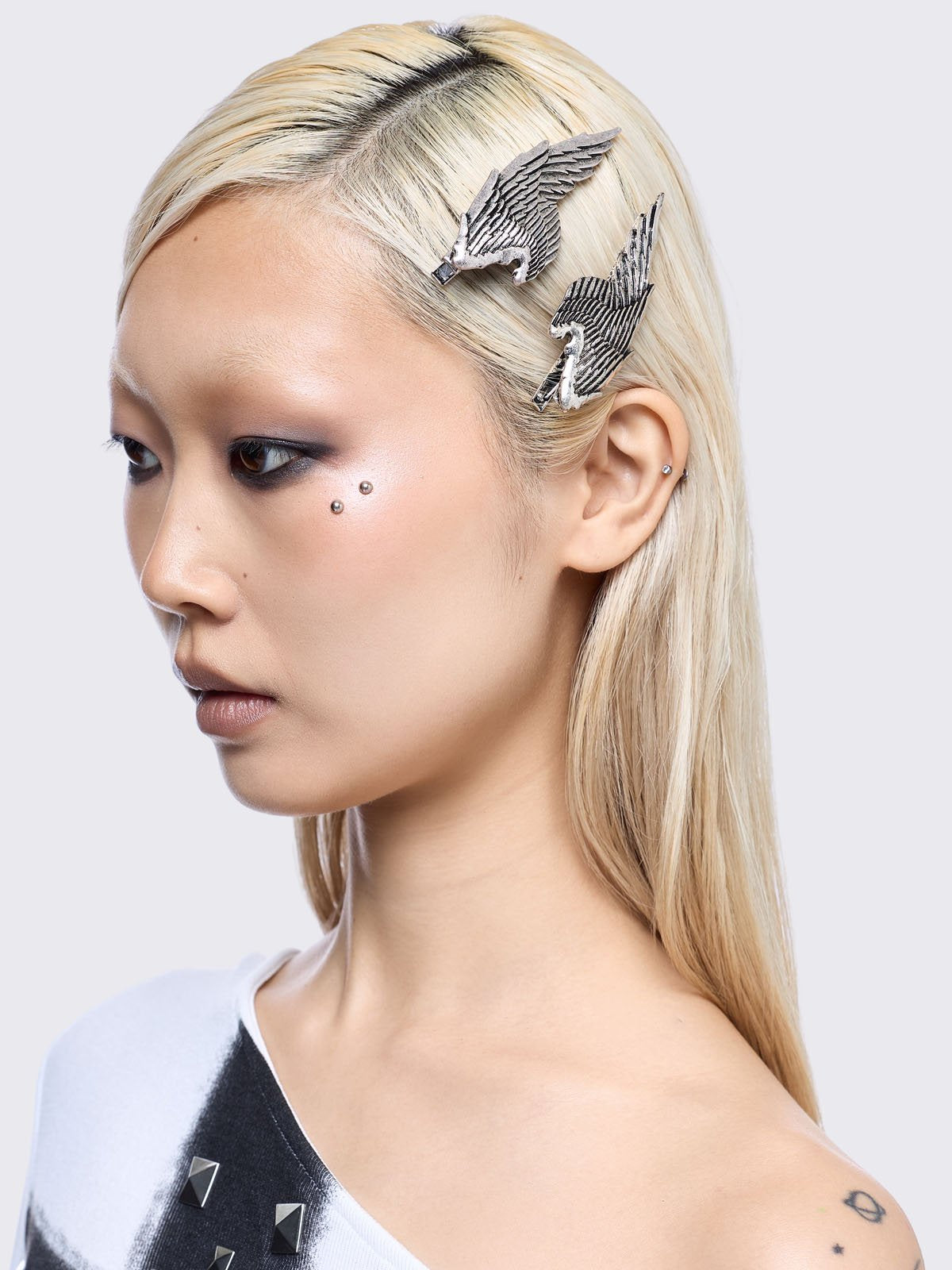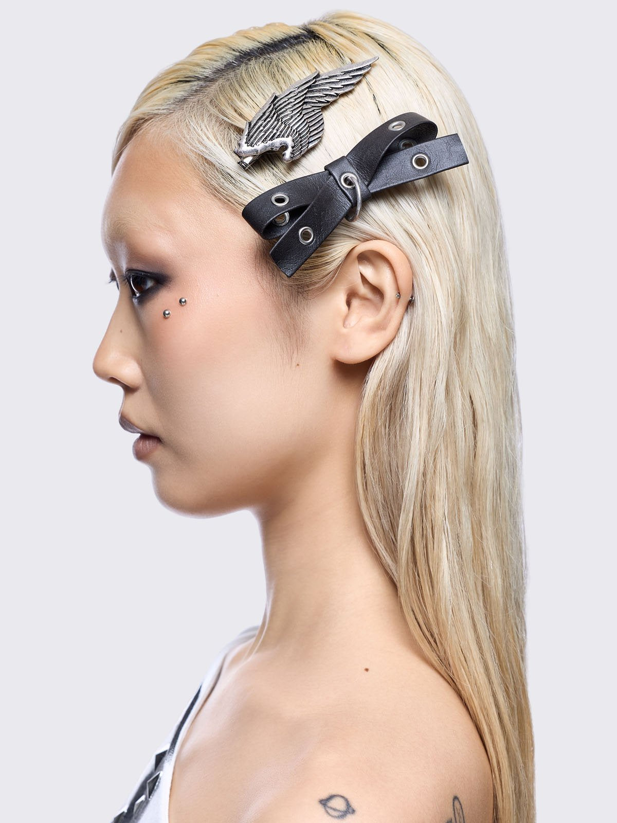 Set of 4 hair clips: Wings, eyelet bow and angel cross